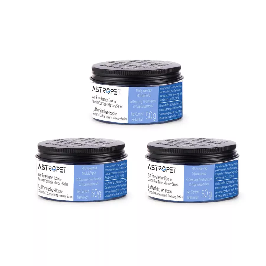 Sag unangenehmen Gerüchen in der Katzentoilette den Kampf an – mit dem AstroPet Mercury Lufterfrischer! Speziell für die Mercury Series entwickelt, sorgt er zuverlässig für Frische und ein sauberes Zuhause.