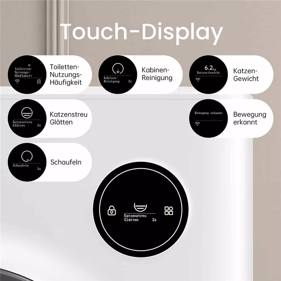 • Für Technik-Fans: Steuere und überwache die Katzentoilette bequem per App – und behalte gleichzeitig die Gesundheit Deiner Katze im Auge.