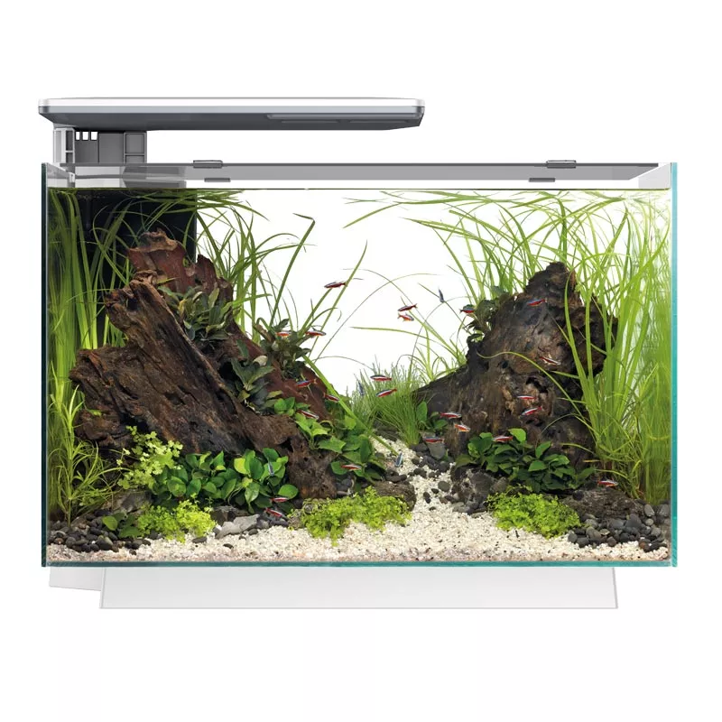 • Der biologische Filter mit Crystal Clear-Kassette sorgt für sauberes und gesundes Wasser, ist einfach zu bedienen und reduziert den Bedarf an Wasserwechseln. Das Aquarium ist dank des feinen Gitters des Filters auch für Garnelen und kleine Fische sicher.